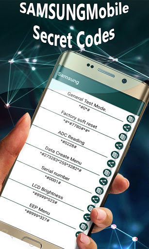 Secret Codes of Samsung include the android secret code of Samsung. You have to click on copy button, code automatically copied and paste it on dialer by long press.