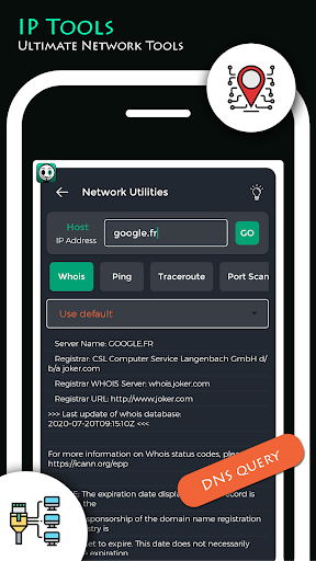 - Ping, LAN Scanner, Port Scanner, DNS Lookup, Whois - Provides information about a website and its owner, Router Setup Page suche netzwerk, Traceroute, WiFi Analyzer, IP address with "My ip(endereço de ip)" feature, Connection Log, IP Calculator, ip test & Host Converter, ip utility tools analyser