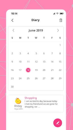 Using this Application, you can put down your all thoughts and your plans in this diary. In This Diary, we provide so many themes. You can choose your mood. We also provide so many Lock Types like password, Safe Lock, Pattern Lock. You can lock your diary with any lock. we have Calendar so you make new entry everyday with date, title, select your mood from so cute