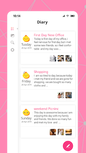 - You can add photos and add emoji like your mood to each entry and express your emotions.