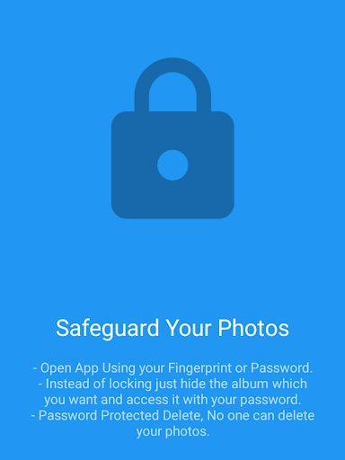 - Password Protected Delete: No one else other than you can delete your photos. When any one tries to delete your photos he can't delete it because app will ask Password Set By You at the time of delete.