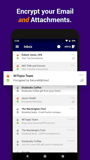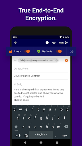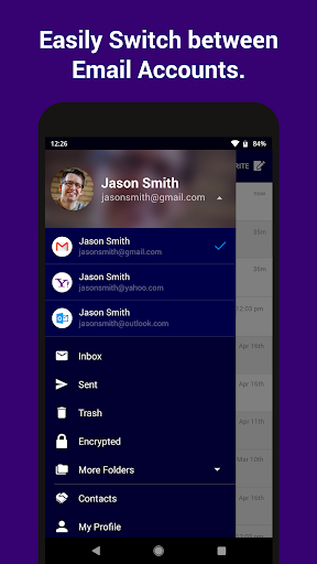 The SecureMyEmail™ secure email app for Android provides easy PGP email encryption for any email address so everyone can enjoy the privacy of end-to-end encryption without having to switch their email provider.
