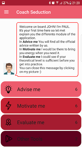 - Advise me: you will find a seduction guide like a real pdf with all the official advice written by the APP-SEDUCTION team.