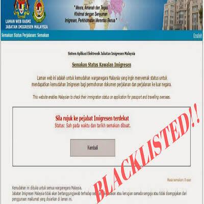 Pastikan anda membuat semakan blacklist Imigresen sebelum merancang ke keluar negara bagi mengelakkan daripada sekatan Imigresen sewaktu tiba di lapangan terbang untuk keluar negara.