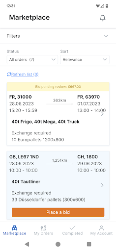 The sennder app provides tools for carriers to easily search for, bid on, and accept shipments, view load and stop details, and manage paperwork.