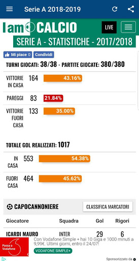 Per una visualizzazione rapida e veloce della classifica del massimo campionato italiano con risultati, classifiche, statistiche e marcatori aggiornati.