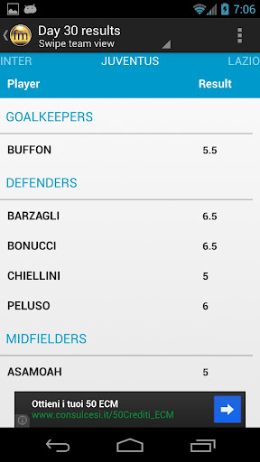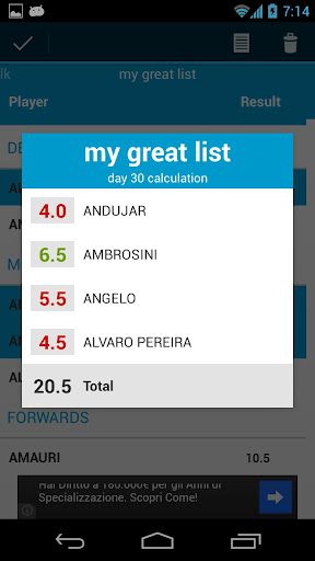 A complete list of Serie A's players results and prices. You can create your own lists of players and calculate the total result of your player set.