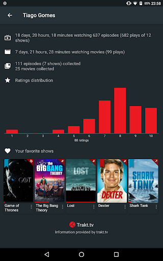- Stats - check out some interesting facts about your habits and how much time you have spent watching shows and movies