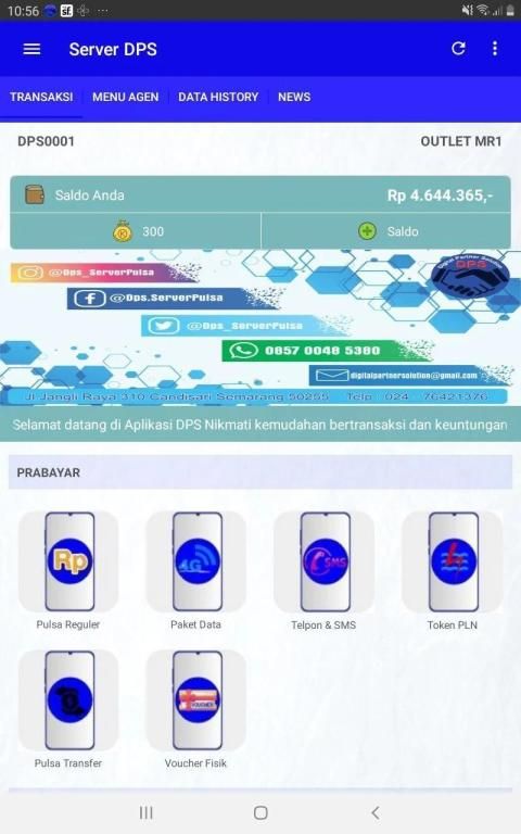 DPS Server android application is a free mobile application for loyal DPS Server members wherever they are. This application makes it easy for you to perform various transactions such as topping up pulses, purchasing electricity tokens, paying postpaid bills, purchasing game vouchers, etc.