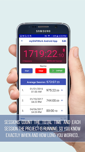 Sessions allows you to add an optional earnings down to the millisecond. It tracks earnings in real time so you can see just how much you're earning.