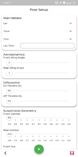 The Setups for racing games app, allows racers to create setups and share them with the community; as well as view setups posted by other members. If a setup proves to be quick or useful to you you can award them a trophy, give them a comment or share the setup with your friends.