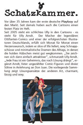 Ully Arndtcartoons aus dem PlayboyMagazin60 heie EdelCartoons aus dem deutschen playboy Cartoons im Playboy Magazin werden seit jeher von den renomiertesten Illustratoren produziert. Seit 2004 erscheinen jeden Monat die Cartoons von Ully Arndt exklusiv im deutschen Playboy.Mit diesem App gibt es nun endlich eine komplette digitale Sammlung aller bisher verffentlichten Cartoons.Ully Arndts PlayboyCartoons sind wunderschne Lifestyle Illustrationen und eine liebevolle Reminiszenz an eine Zeit, in der es noch echte Playboys gab.