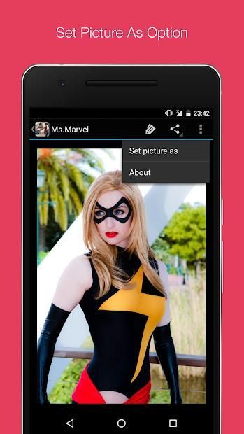 Application is a gallery of beautiful and sexy girls who shows themselves in clothes of different characters from famous games ,movies and comics. Application does not contain any kind of pornography and violence.