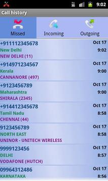 Now includes detailed call log for missed calls, outgoing calls and incoming call showing Indian state (city also for landline) for Indian numbers and country for international numbers.