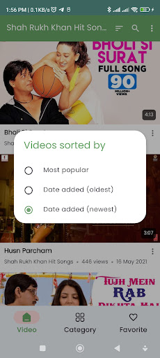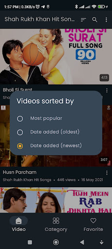 In Shah Rukh Khan hit songs app one can easily bookmark their favorite Shah Rukh Khan video song and then watch them later by going to favorites section from the navigation bar.
