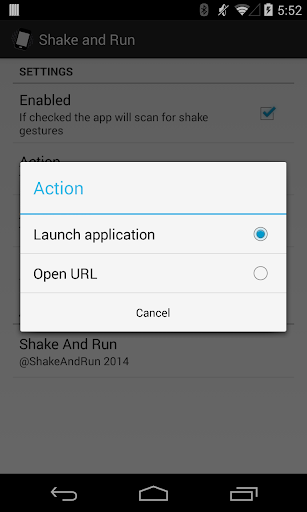 "Shake and Run" allows you to launch an application or open a web site just shaking your device