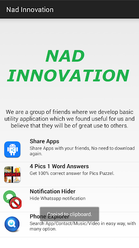 * Share Apps Link by any application which accept text (SMS, Whatsapp,Facebook, google reader, etc...)