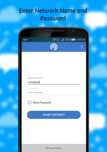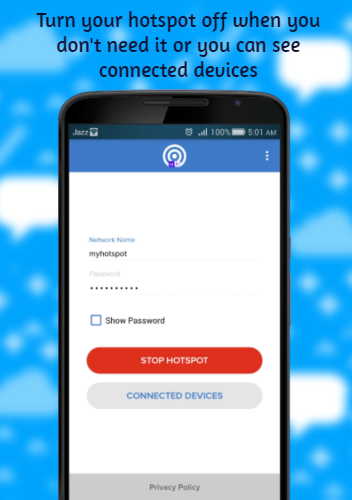 Share Mobile Internet - Portable Wifi Hotspot creates a secure wifi hotspot using Network name and password