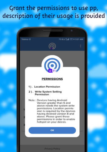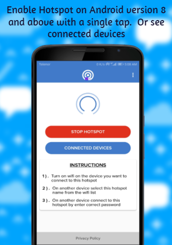 - Share Mobile Internet - Portable Wifi Hotspot is Fast and interactive : The app responds very fast to any action you perform ( i.e enable or disable wifi hotspot) the app well maintains the current state of the hotspot and thus display the relevant user interface differentiated with different colors for user ease of use.