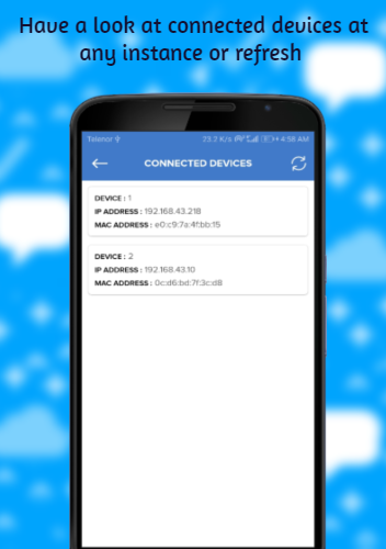 - Share Mobile Internet - Portable Wifi Hotspot allows you to keep eye on who is using your mobile internet, the app shows the IP and Mac Address of the devices (including laptops) connected to your hotspot.
