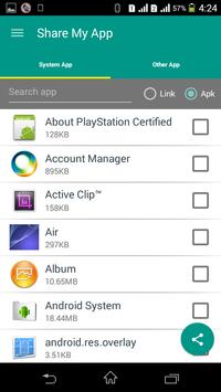 - Share installed app apk or Google Play link of the app, system apps apk and multiple apks
