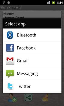 Using this app you can easily share your contacts via SMS, email or any other application that can accept text.