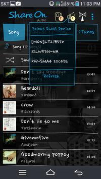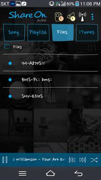 ShareOn Audio is an wifi music player for Android. This is different from other ordinary music players. ShareOn Audio does not download files from your computer. Instead, it gives access to your PC directly. You can play all your music in your PC even music in iTunes. Moreover, ShareOn Audio can play your music on your devices through DLNA compatible devices on your Wi-Fi network.