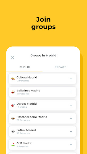 • Keep in touch with people in cities such as Barcelona and Madrid with the same hobbies, neighbourhoods and groups of the city: