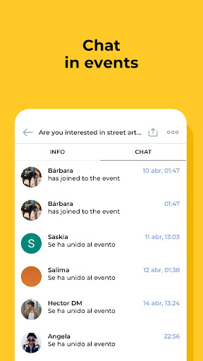 👉 Whether it's going to run, new art exhibition at the museum, take a few afterwork beers, walk the dog or go to the cinema, you can join the events of other users or create your own.