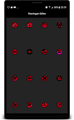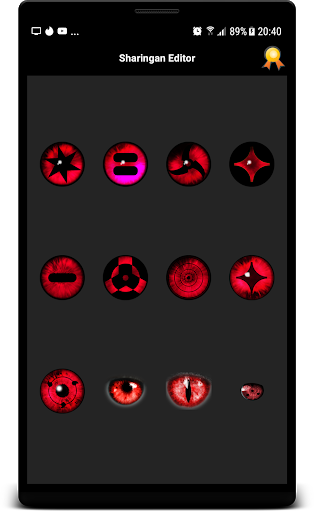 Sharingan Eye Lens Photo Editor Get yourself Sharingan Eyes and Eye Lens on Selfies and Photos. You can choose out of a huge Selection of different Sharingan Signs and Sharingan Eye Lens. Select your desired Photo from Gallery and choose from the list your Sharingan logo with the centered Button. Touch the Sharingan Lens and drag it to the desired position. Add as many Sharginan Lens you want to have, save your Picture and share your creations with friends or family.