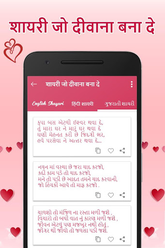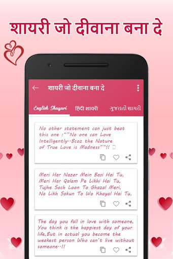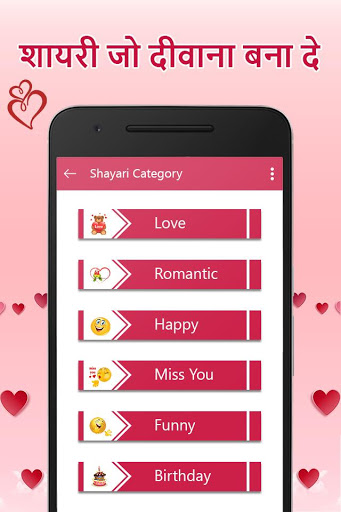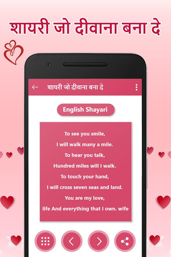 Find the Perfect Shayri to Share with your loved once through social networking or instant messenger apps.Very beautiful design and function for full enjoy of Shayari. This app have Shayari Arranged by Categories and you can Easy Make some Shayari for your favorite !