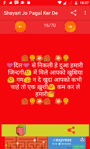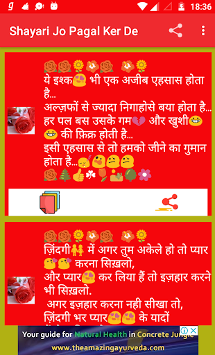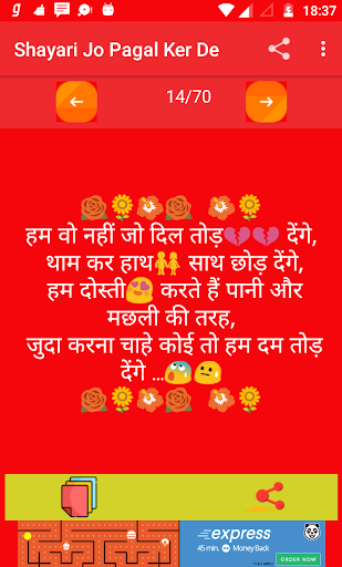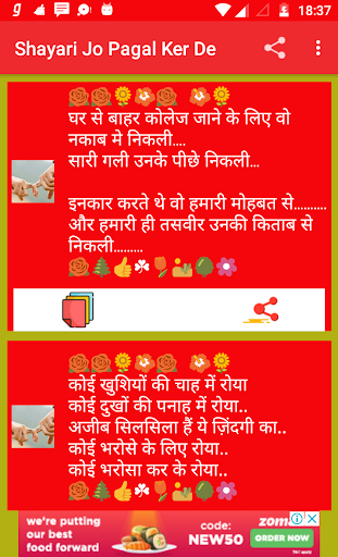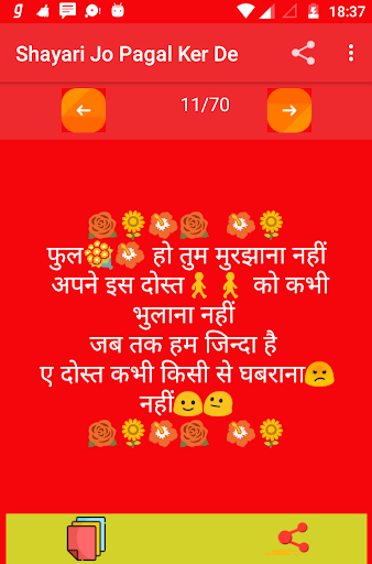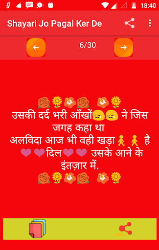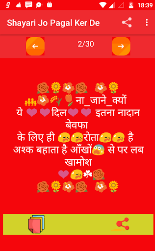 Shayari is one of the best thing that is used to place your emotion in front of anyone .This app is one of the sad shayari hindi collection also its totally free and no internet connection required . Use this amazing unlimited sad shayari and share to emotion feeling to someone .
