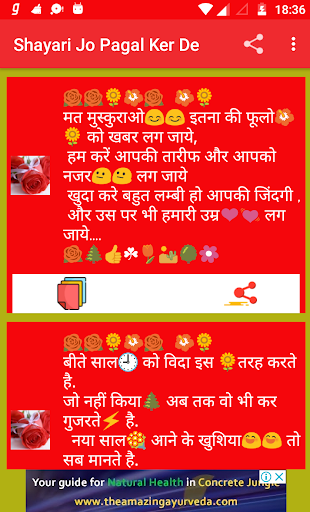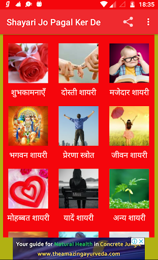 This app contains the list of shayari category like Best Wishesh Shayari, Friendship Shayari, Funny Shayari, God Shayari, Motivational Shayari, Life Shayari, Love Shayari, Memories Shayari, Others Shayari, Politics Shayari, Sad Shayari, Sharabi Shayari, Bewfa Shayari, Birthday Shayari, Good Morning Shayari etc.