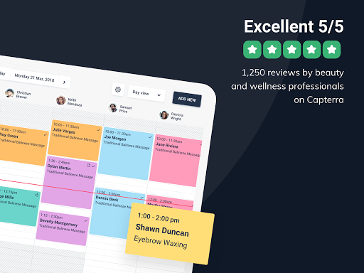 • Incredibly easy to use appointment calendar specifically suited for salons and spas