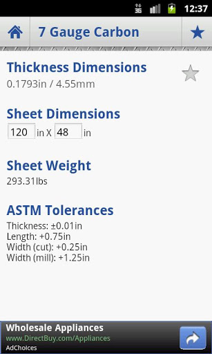 Tables that list the thickness of aluminum, carbon steel, and stainless steel sheet metal. It also calculates the corresponding weight and ASTM tolerances of each sheet.