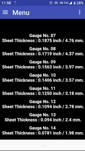 This App Used to know Sheet Thickness for Wire Gauge Number.