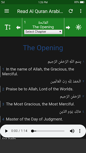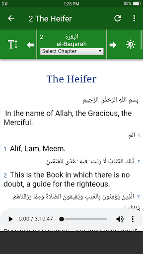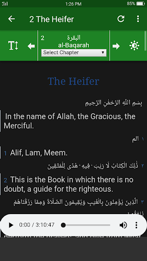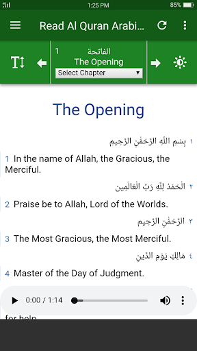 •Audio recitation of each chapter and verse to facilitate the Muslims around the world.