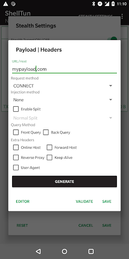 >> Open stealth setting, turn on stealth setting, edit http payload and select one of our server to connect or use your own custom server