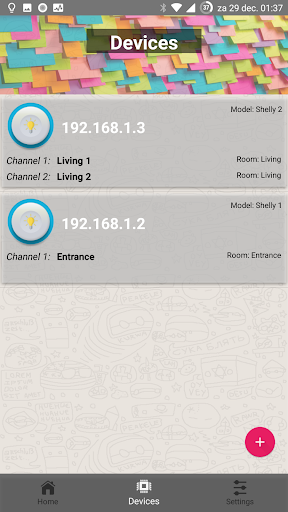 This is the main page, where you will see a button for each shelly device you configured.