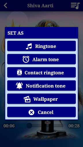 ★ Show current & total time with title of current Lord Shiva ringtones.