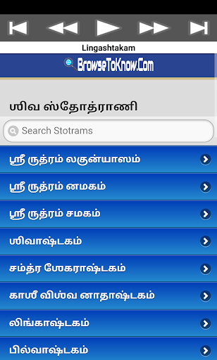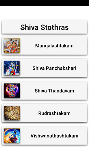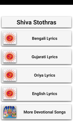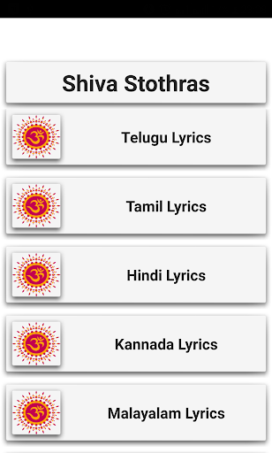The app Shiva Stothras contains all Shiva stotrams audio and lyrics in 9 Indian languages.