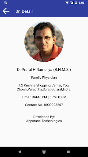 This app is for Shivam clinic yogi chowk surat and physician doctor praful ramoliya B.H.M.S.