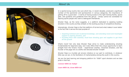 Shooter Paaji is a humble yet sincere initiative on our part to contribute, in whatever little way we can, to the facilitation of marksmanship among the youth in the country.