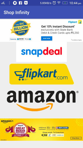 Shop Infinity is one stop app for major Online shopping Stores. Now you can shop from leading stores from a single app. This helps in find great deals from your favorite shopping websites.