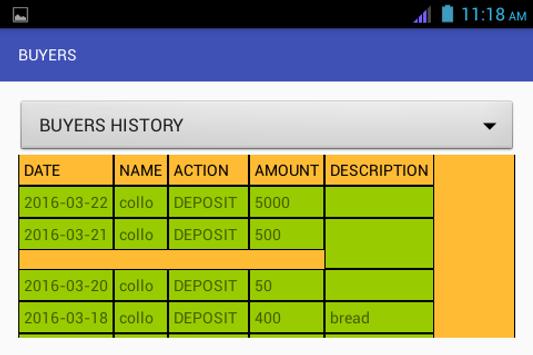 Enables you to add new buyer(Buyer number and name must be unique). You check buyers and their history.You can also new user and set user level(either adm or just user)