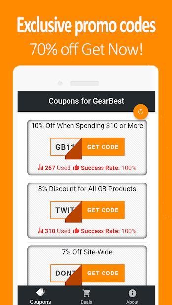An useful app where you find many promotion for Gear Best & free Deals. Check out online smart coupons & promo codes and discount for GearBest – fresh digital Coupons & Deals before you go shopping.Check out all list Coupons of best buy black friday discounts 2018, Back to School deals and free online Coupons. Catch our Codes on Everything for home, life and beyond. Look no further more all the shopping Coupons for products you trust at everyday low prices as 99 cent a store you can rely on are in this app. promo codes & offers for GearBest store app to make life easier for you and your family with services that help you manage your budget, your health ,and saving your money .
