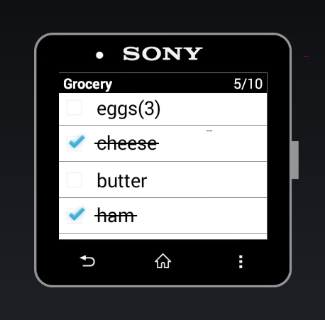 Have you ever forgotten to buy anything? Build your shopping list and don't forget again! Check bought items on your SmartWatch2. It is really simple shopping list for fast work. You can define just item and amount of it and separate them to different lists.