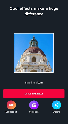 -Short Video Maker provides 720P/1080P HD export with no quality loss and no duration limit. You can save the video or slideshow to your draft or album at any time.