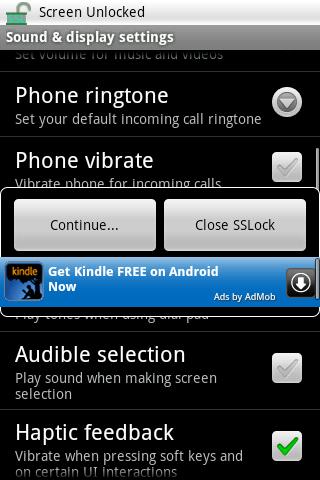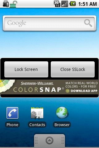 show Screen lock allows you to lock your device39;s screen, keeping it from receiving touch commands, while also keeping the screen on.For example, say you39;re shopping and want to keep your shopping list on screen. While other Apps may be able to keep the screen lit up, Show Screen Lock also prevents you from accidentally scrolling through your list, or pressing a button you didn39;t mean to.SSLock is useful in many situations, and is easily accessible through your Notification Bar, but doesn39;t take up valuable space when you39;re not using it.Features Usage: Lock screen by selecting the Notification in the Notification Bar Unlock screen by Selecting the Notification in the Notification Bar Pressing the quot;Backquot; button on your device Pressing the quot;Homequot; button on your device Automatically unlocks if you receive a phone call or txt message Close by selecting quot;Close SSLockquot; from the Notification Bar dialog Selecting it from your Recently Used App List brings you right to the quot;Lock or Closequot; dialogcheck out the donate version to remove the ads.