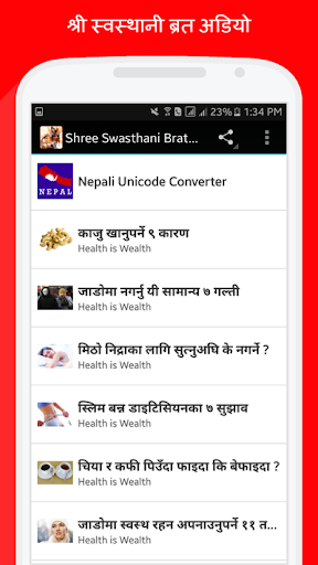 Shree Swasthani Brata Katha explains supreme reality of the nature of pure awareness, infinite mass of bliss and light exist in this Brata Katha. So, to understand life and realize its glory integrally one has to study the Shree Swasthani Brata Katha in all its phases and from all stand points. To have a partial view of particular aspect of it alone and to hold forth that as the whole truth has been the cause of imperfection in spiritual experience.We believe that this app "Shree Swasthani Brata Katha" will add a brick in the reformation of society and uplifting of Art, Culture, Religion and Literature.